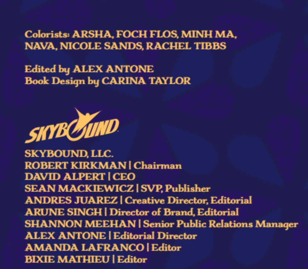 Notable History and Works: Skybound, Looty games, Pact Marker. Published work: Ava’s Demon: Reborn, Ava’s Demon: Aftermath.